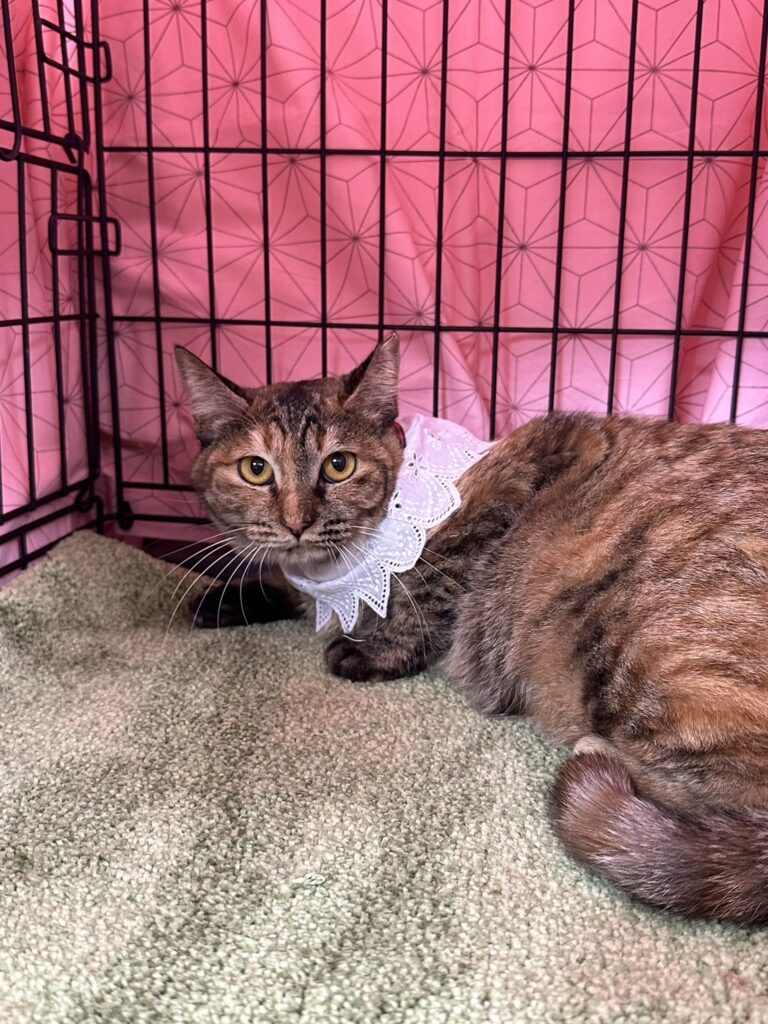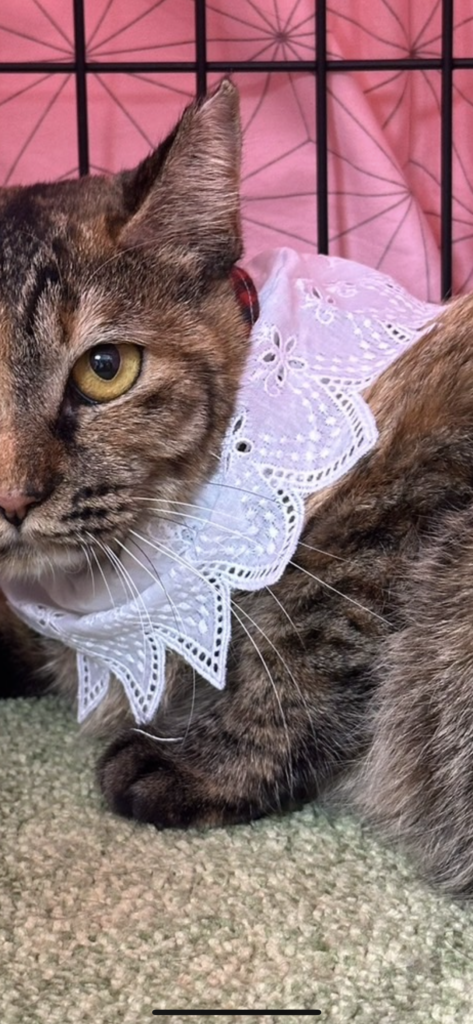今回紹介するのは、写真の猫ちゃんが身につけている 「レースカラー(つけ襟)」。柔らかいレースがふんわり首元を包み込み、写真撮影や特別な日のおめかしにぴったりのアイテムです。小さなアクセサリーですが、暮らしにそっと彩りを添える存在です。