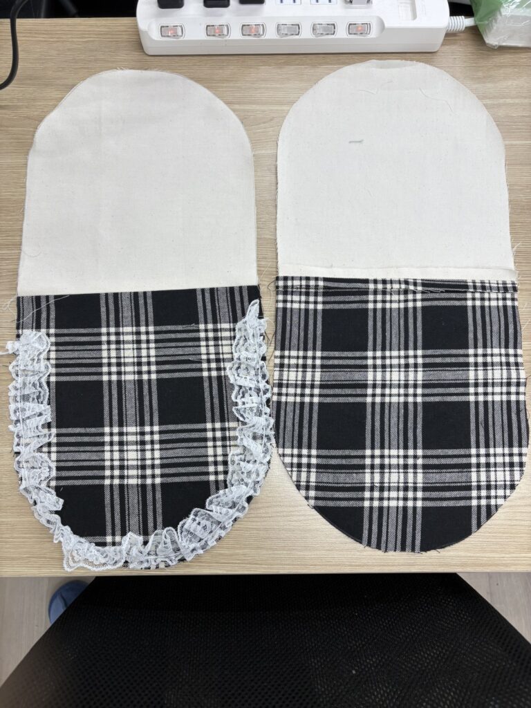 装飾となるレース部分は、完成後の印象を大きく左右するため、位置や縫い目のバランスが重要です。