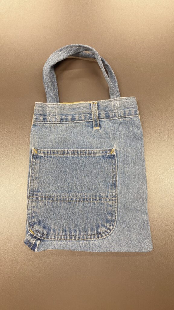 使われなくなったデニムパンツを素材として再活用し、日常で使えるバッグへと仕上げていきます。