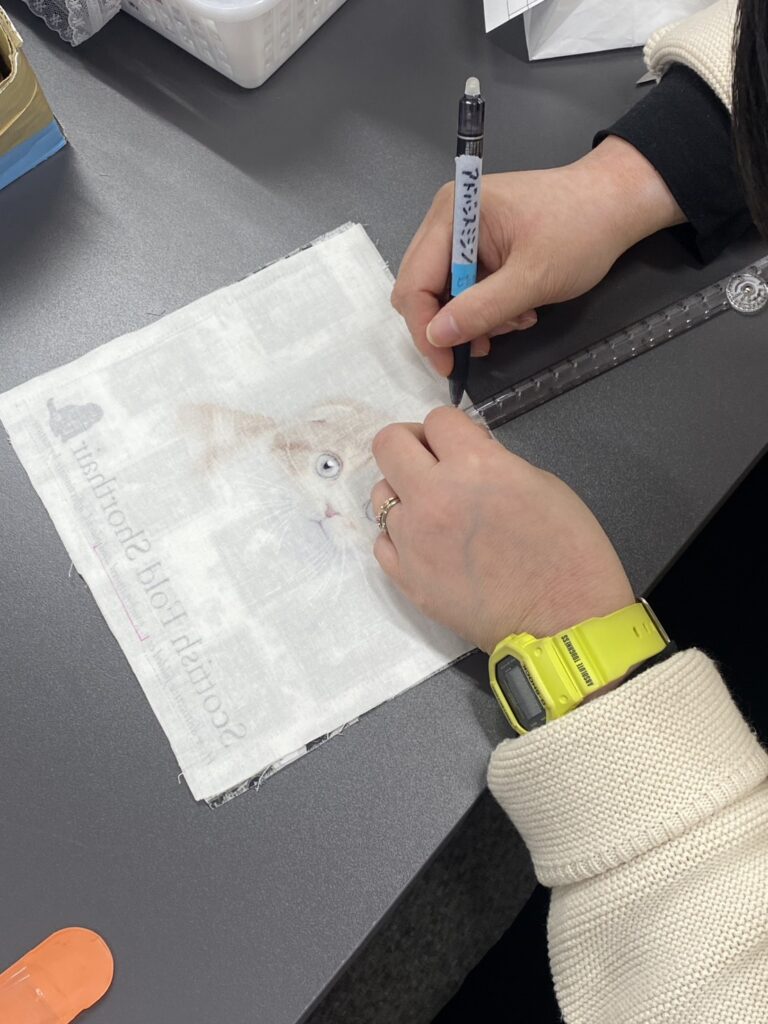 今回は、利用者さんが一から制作した、にゃんこプリントのクッション作りの工程をご紹介します。