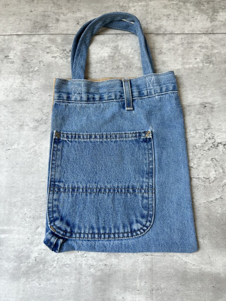 デニムのトートバッグ(表はデニム、裏はブラウンカラーの生地)