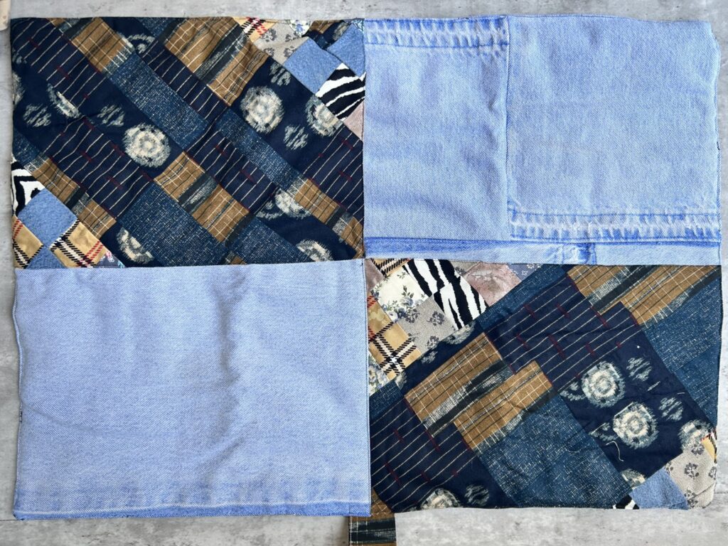 デニムとプリント生地のパッチワークのペットマット
