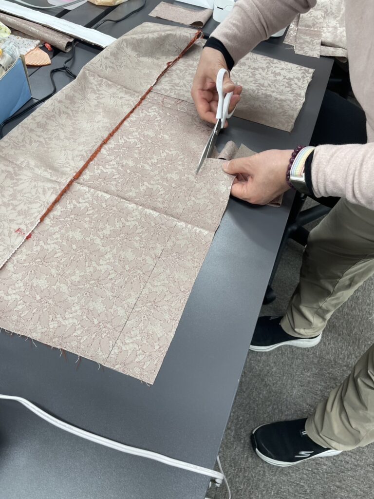 「布地の柄が少し分かりにくかったので、裏表を間違えないように慎重に確認しながら進めました。生地自体が伸びやすいため、縫い幅がずれないように意識して、ミシンのスピードを抑えつつ真っすぐ縫うことを心がけました」